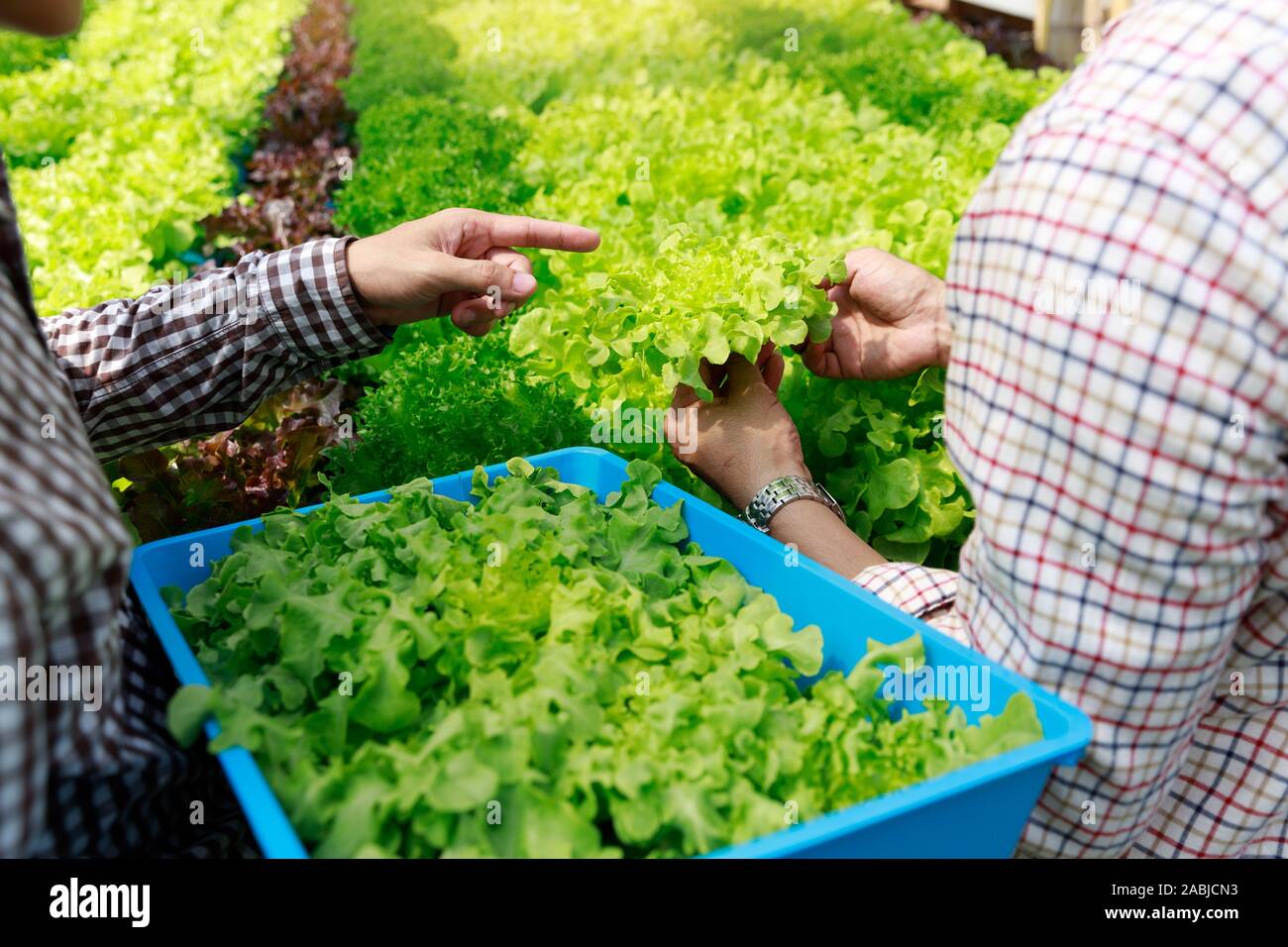 Hydroponics Farm Worker Harvesting And Collect Environment Data