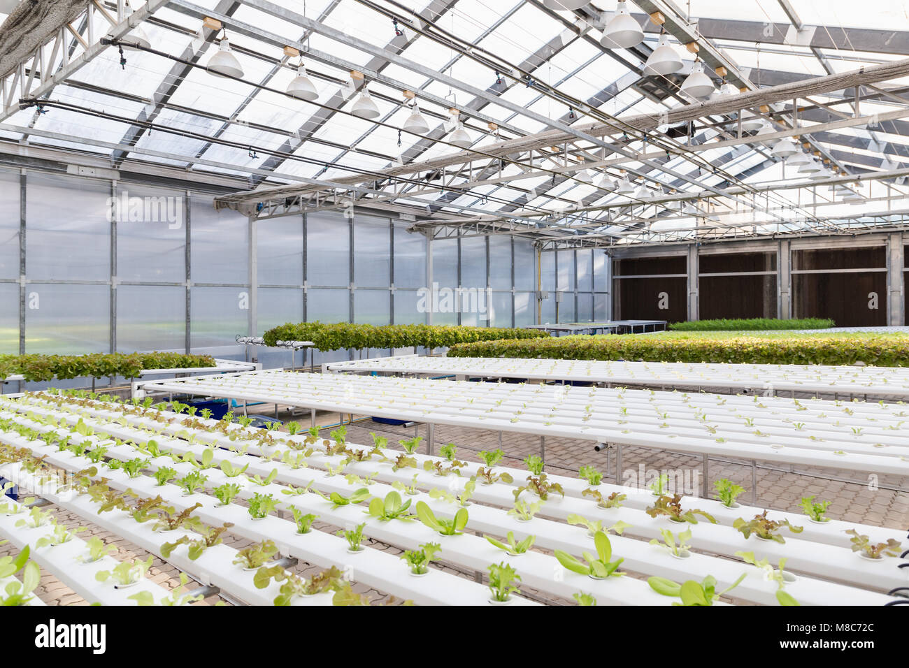 Hydroponics Greenhouse Organic Green Vegetables Salad In