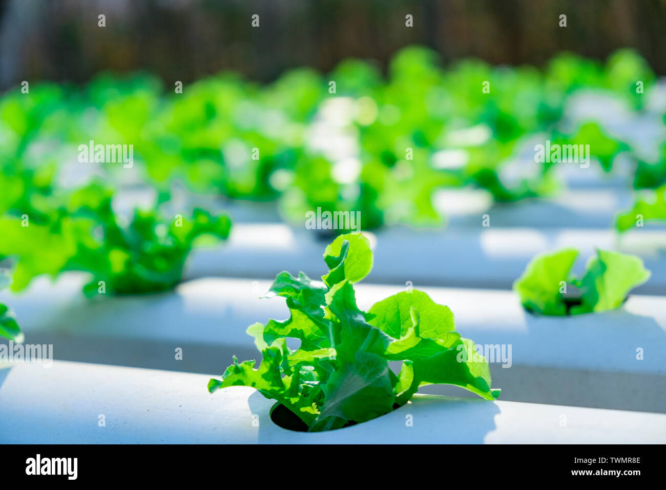 Vegetable Green Oak Growing In Hydroponic System Flow Water And